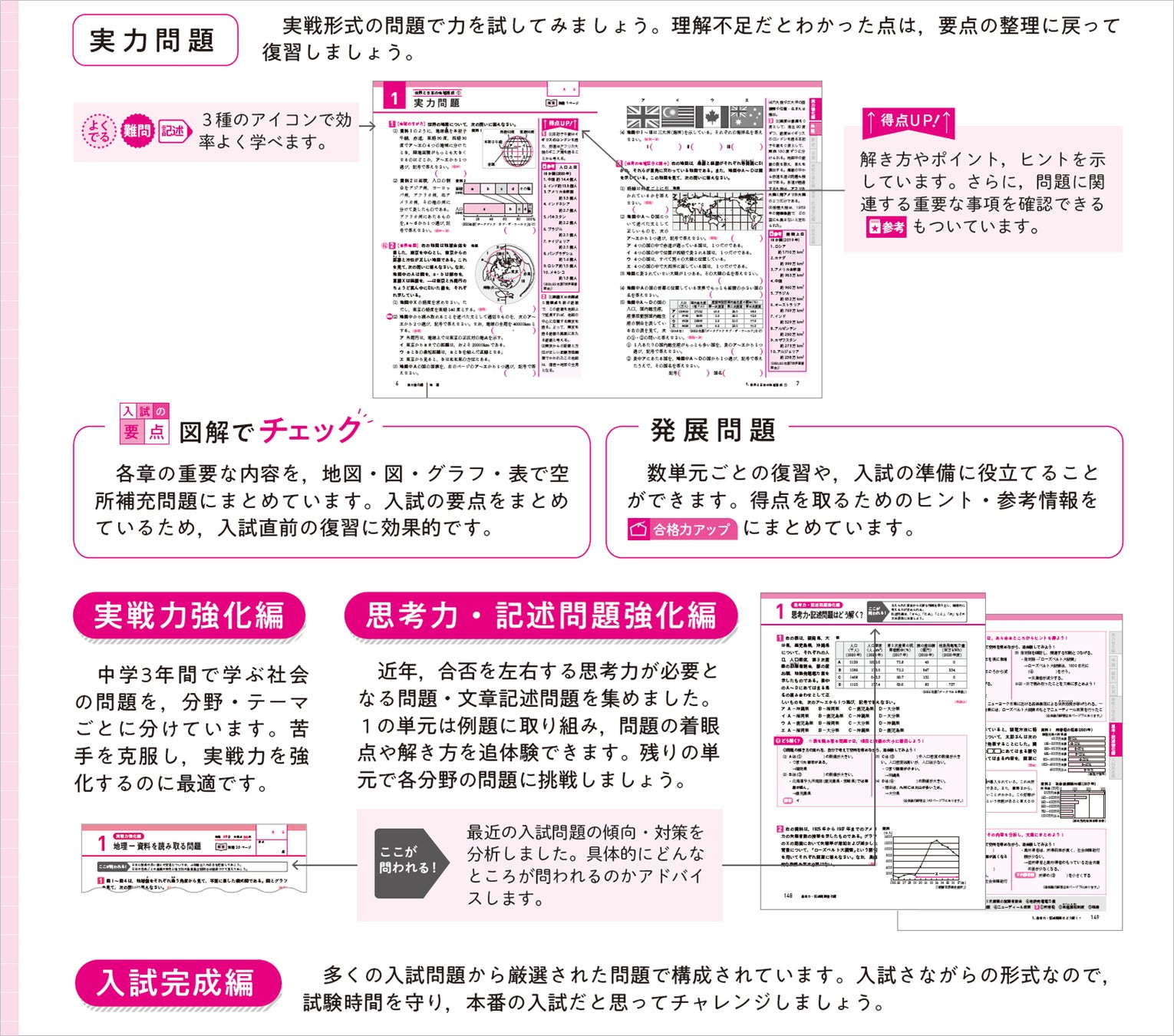 ●出題が増加する思考力・記述問題を充実。考えて解くアプローチをしっかり習得