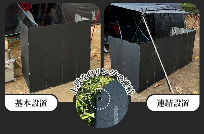 目隠し 焚き火リフレクターをサイトの周囲に設置することで、目隠しとして使うことができます。これにより、プライベート空間を守ったり、他のキャンパーの目を気にせず焚き火を楽しんだりすることができます。