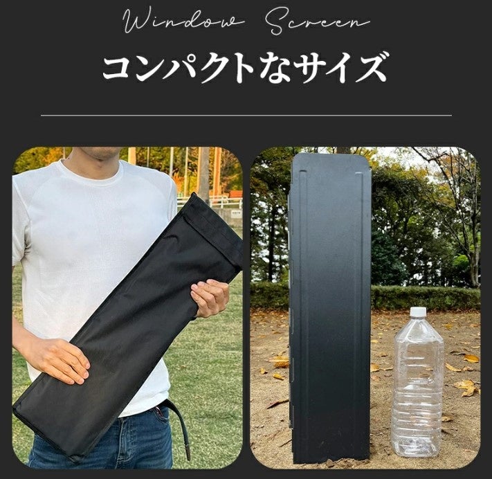 高さ60cm、幅120cmの大型サイズで、風よけ