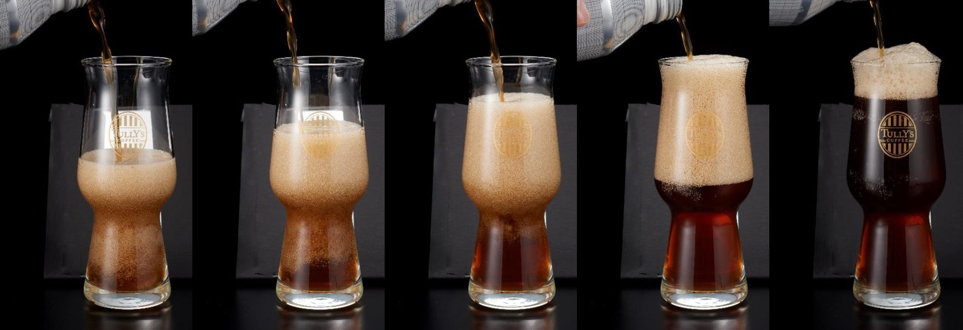 また、そのまま飲むだけでなく、ひと手間かけてグラスに注ぐと、まるで“スタウト”(※)のようなクリーミーな『黒泡』をお楽しみいただけます。今回、この『黒泡』をご家庭でも簡単にお楽しみいただきたく、本製品3本とオリジナル「黒泡グラス」1個がセットになった「TULLY’S COFFEE BLACK&SODA GASSATA 黒泡グラスセット」(数量限定)を同時に販売します。