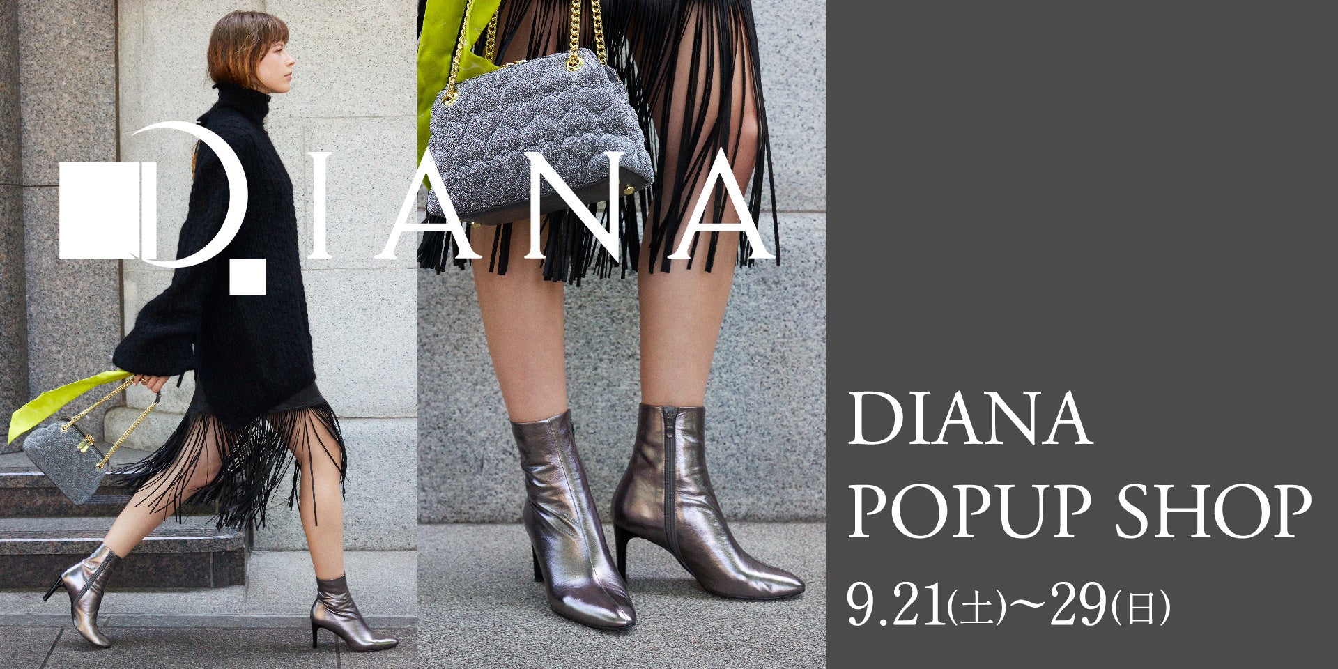 ダイアナ株式会社(本社:東京都渋谷区神宮前)が展開するレディースシューズ・バッグブランド「ダイアナ」より期間限定POPUP SHOPのご案内です。2024年9月21日(土)~29日(日)の9日間、万代シティ ビルボードプレイス1F にてDIANA POPUP SHOPを開催いたします。