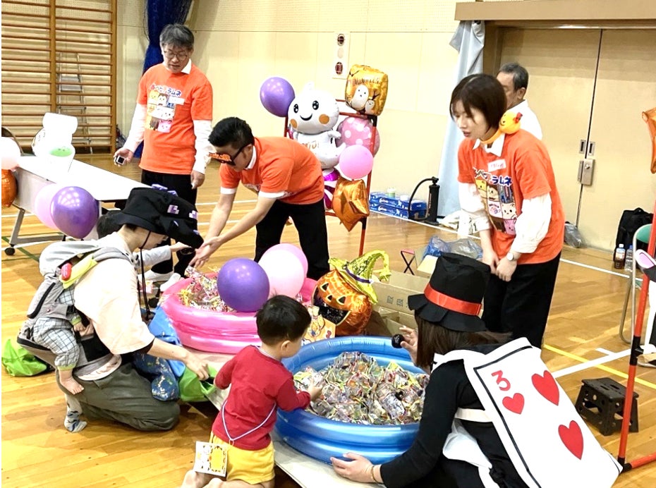 イベントでは5社それぞれのブースをめぐり、お菓子を獲得するゲームに参加。会場はたくさんの笑い声とお菓子を手にした子どもたちの嬉しそうな笑顔があふれ、なごやかな雰囲気に包まれました。朝早くから準備に駆け付けた運営スタッフも、子どもたちの笑顔に大きなエネルギーをもらいました。