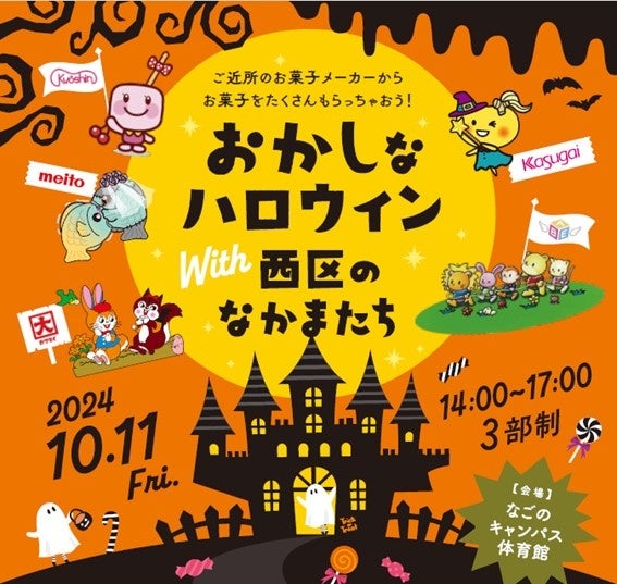 2024年10月11日(金)、名古屋市西区のなごのキャンパスで行われた「おかしなハロウィンwith西区のなかまたち」。春日井製菓株式会社(本社:愛知県名古屋市西区、代表取締役社長 春日井大介)が同じ名古屋市西区に本社を構える安部製菓、カクダイ製菓、共親製菓、名糖産業に声をかけ実現した、地域貢献を目的としたコラボレーションイベントです。
