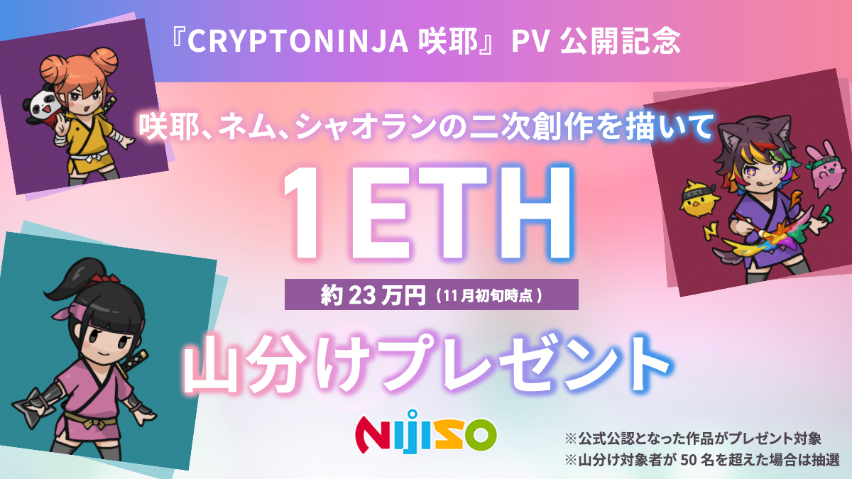 「CRYPTONINJA 咲耶」アニメーションPV公開記念、『ニジソー』総額1ETH山分けプレゼントキャンペーンを開催