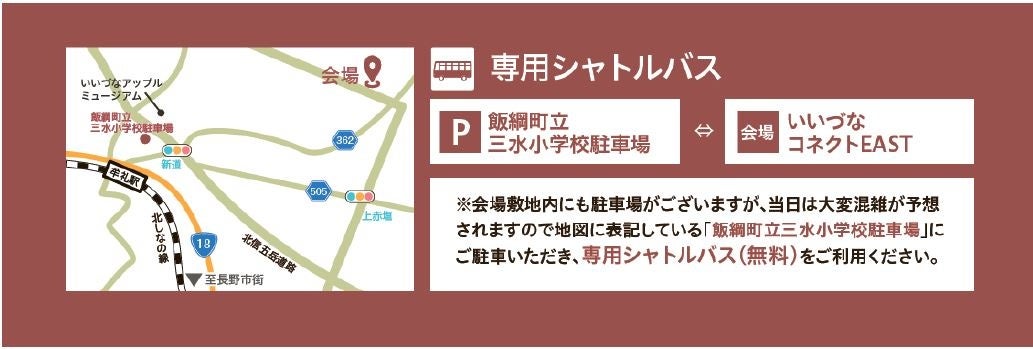 臨時駐車場:長野県上水内郡飯綱町普光寺179(飯綱町立三水小学校駐車場)