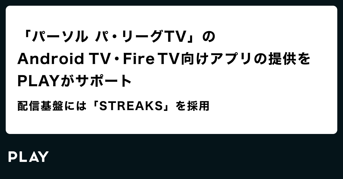 「パーソル パ・リーグTV」のAndroid TV・Fire TV向けアプリの提供をPLAYがサポート 〜配信基盤には「STREAKS」を採用〜