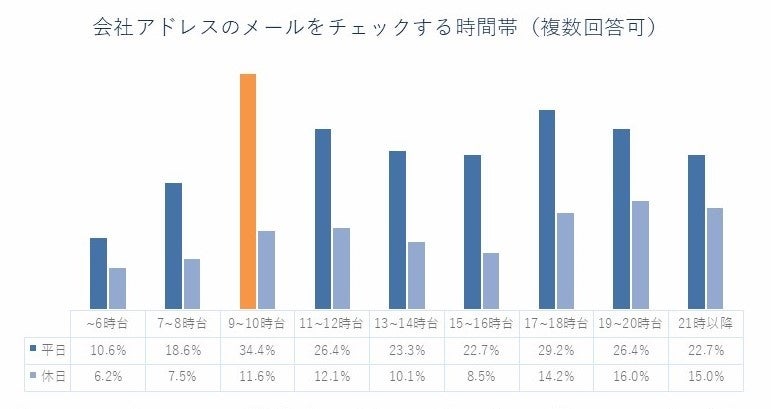 ・会社アドレスのメールをチェックする時間帯は「平日9~10時台」が最多