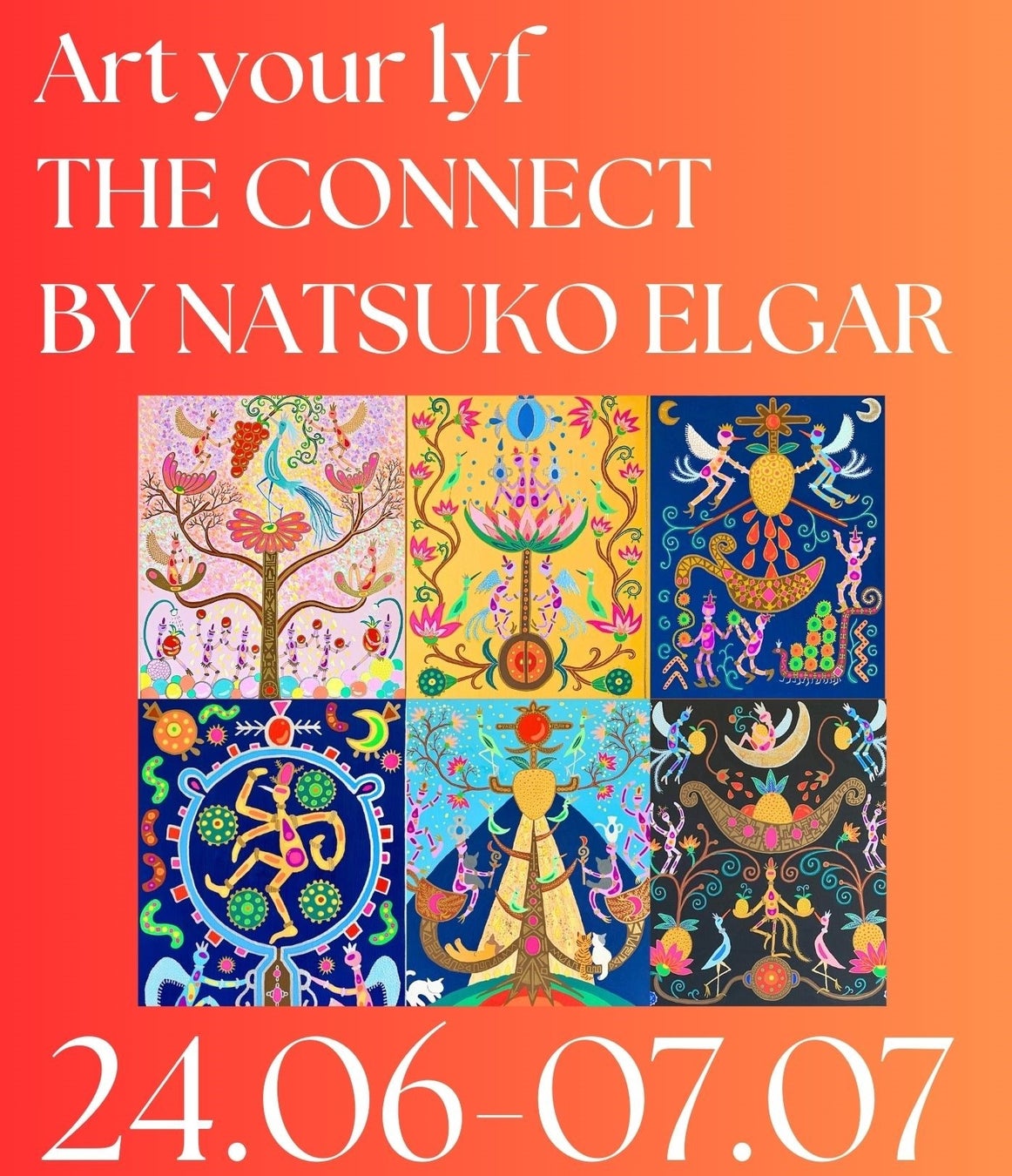 ゲストが行き交うlyfのCONNECTスペースを永遠に循環する平和な世界を”自由”に想像していく様子に見たてた Natsuko Elgar ワールド。「祝祭シリーズ」をテーマに、この星の全ての生命維持が叶う魔法の実を軸に、フェニックスや様々な生物が収穫を喜び、分け合い、活用していく事で互いに必要とし合い平和で永遠の世界が循環していく。輪廻転生、生命のエネルギーが循環する様子や作品から溢れる多幸感やポジティブなエネルギーを、ぜひ没入感のあるアート作品やライブペインティングにてお楽しみください。