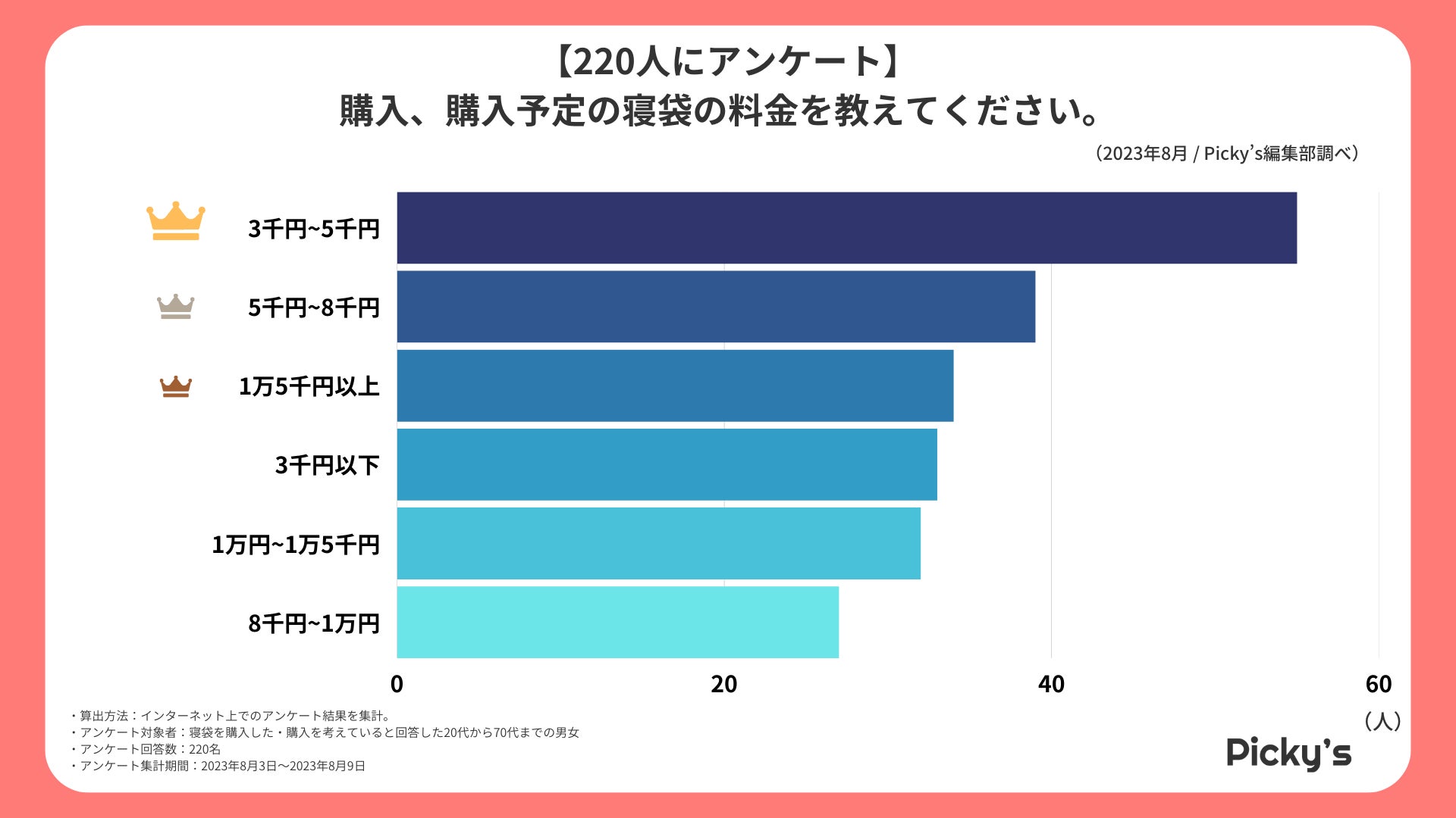 寝袋を選ぶポイントとして1番多く選ばれた回答「価格帯」。