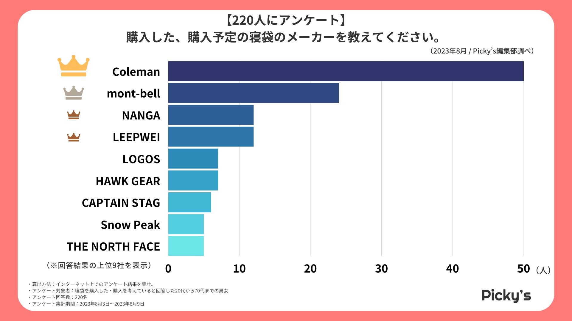 「Picky’s」は、インターネットショッピングにおいて、購入前に試せない・選ぶべきものがわからないという課題の解決を目標に、あらゆる商品のおすすめランキングや検証レビューを紹介するサイトです。このたびPicky’s(https://rentry.jp/note/)では、アウトドアシーズンに先駆けて、寝袋についてインターネット上でアンケート調査を行いましたので発表いたします。