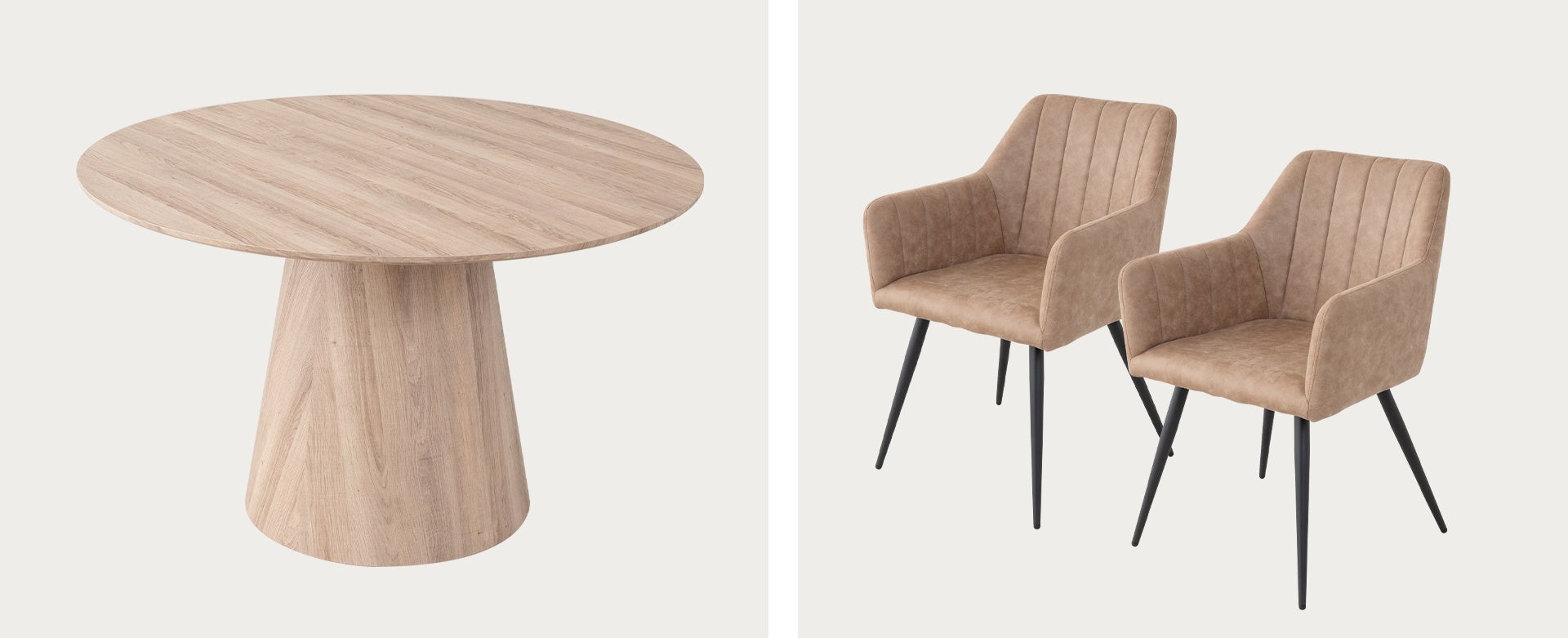 ■【TORREMO/トレモ】ラウンドダイニング5点セット 79,900円(税込) ■ラウンドダイニングテーブル(単品) 45,000円(税込) ■ダイニングチェア(2脚セット) 19,990円(税込) |
