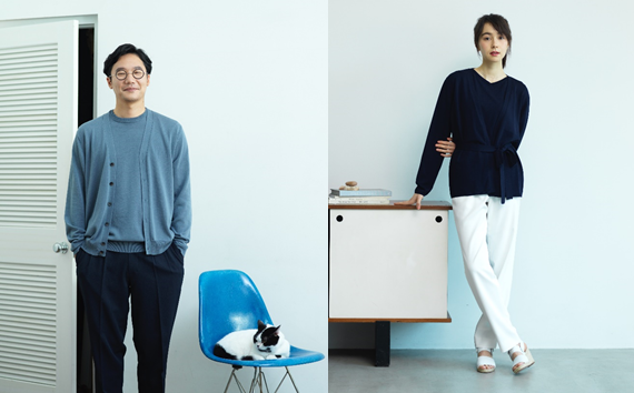 「アンサンブルニット」はサステナブル素材にこだわり、メンズウェアはニットポロシャツ、ニットTシャツ、カーディガンの3アイテムを展開。レディースウェアはメンズと同素材を使用しながら、VネックニットTシャツと取り外しのできるベルテッドノーカラーニットを、発売いたします。