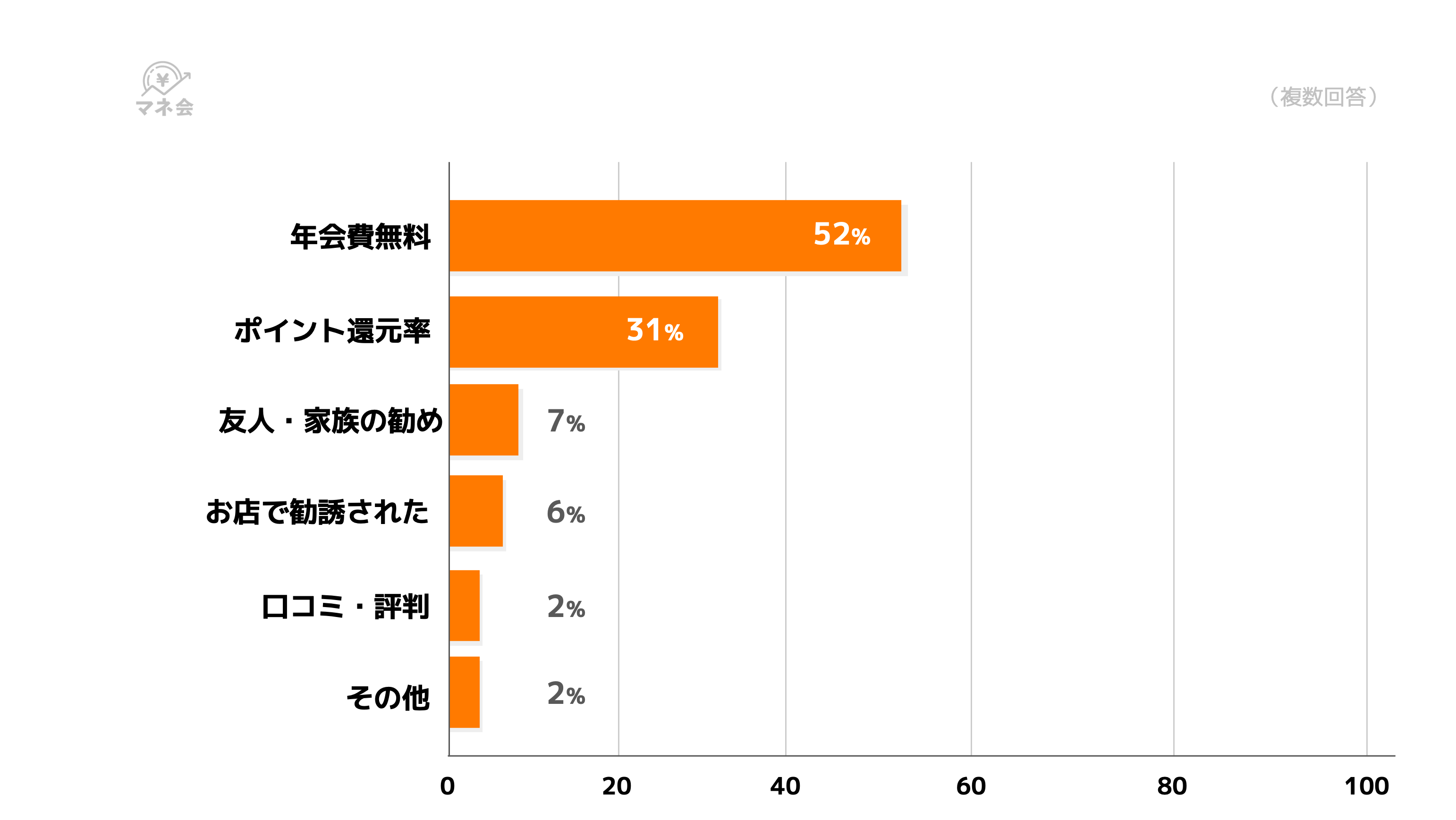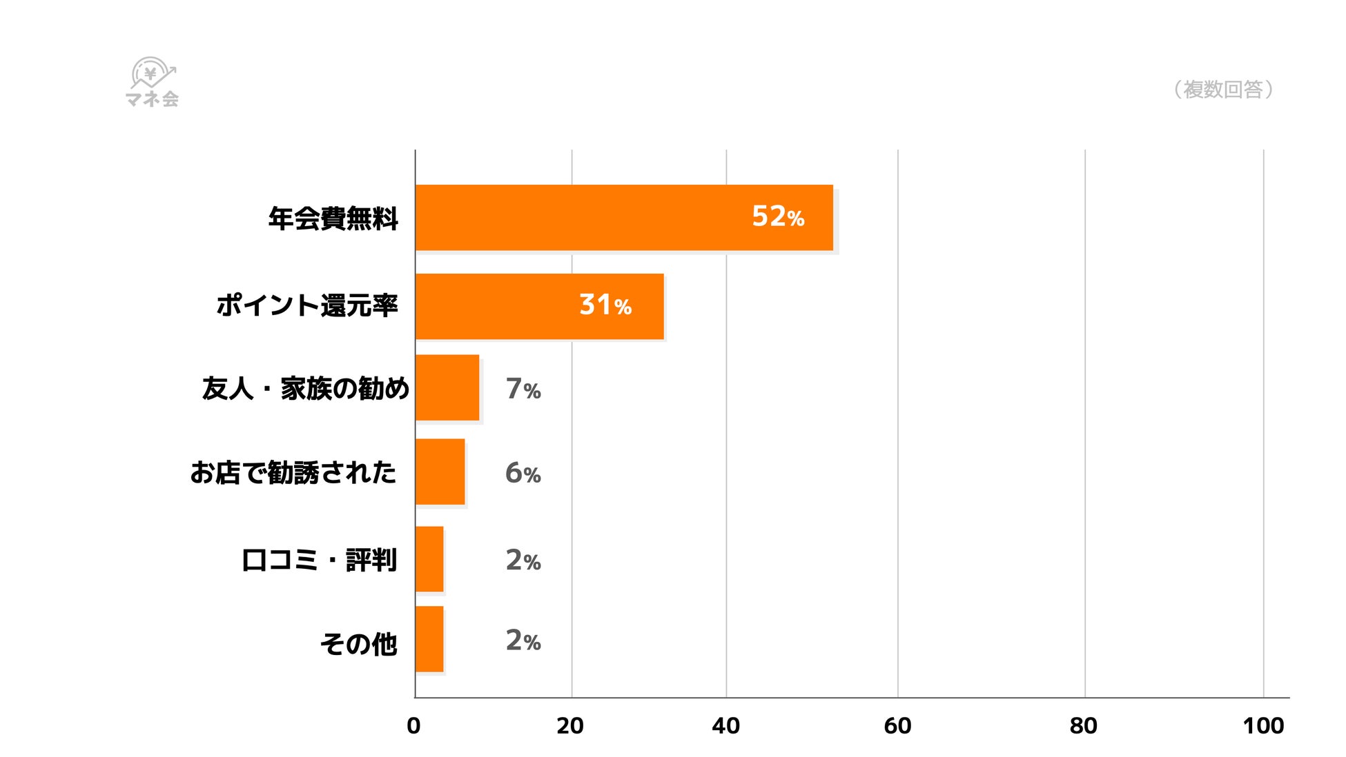 2.最終的な決め手は「年会費無料」52%、「ポイント還元率」31%で“お得さ”を重視する傾向