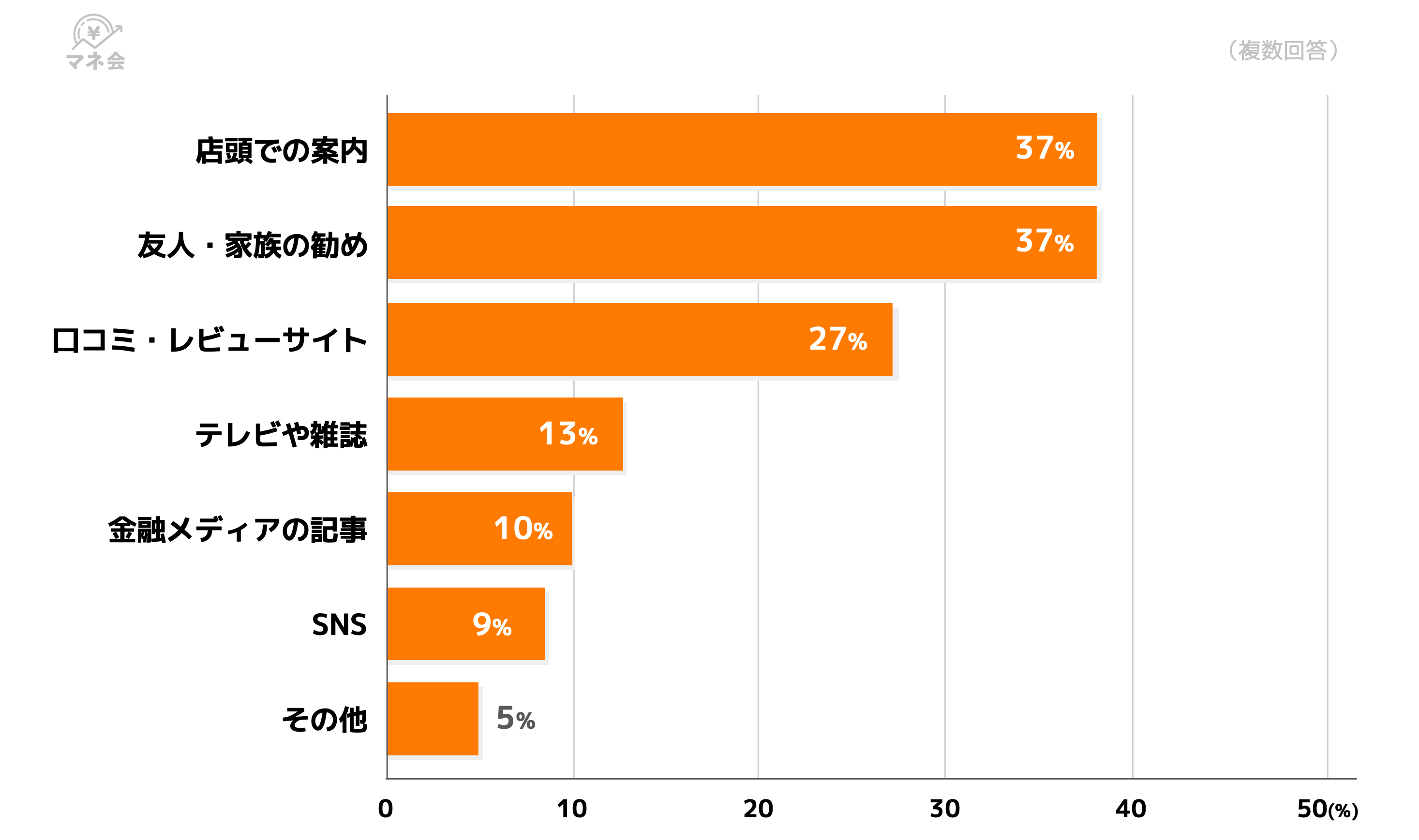 3.情報源は「店頭での案内」37%、「友人・家族の勧め」37%が上位で、リアルな口コミが影響大