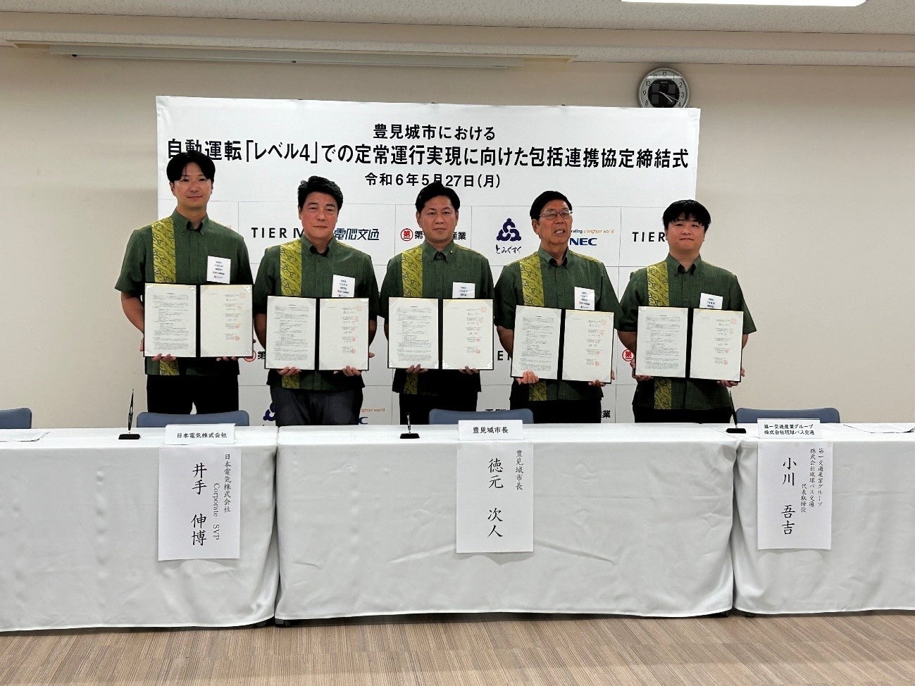 さらに今回5月、豊見城市、第一交通、電脳交通、NECと、自動運転バス車両および自動運転に関連する技術を有するティアフォーは、豊見城市における自動運転バスのレベル4運行実現に向け包括連携協定を締結しました。