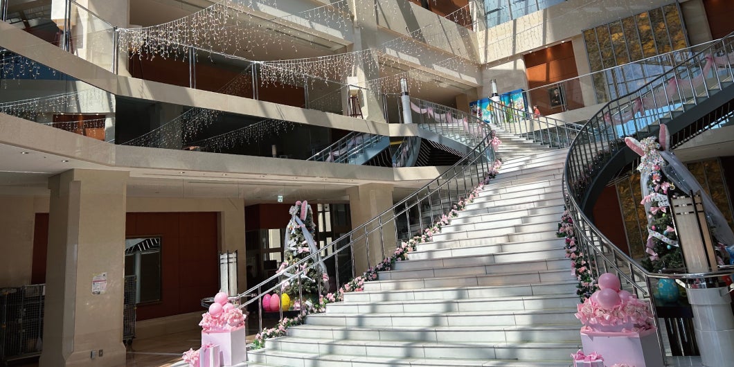 ランドリールームは、ホテル正面玄関と同じ階。大階段が圧倒的な存在感を放つ開放感あるロビーの一角に位置しています。