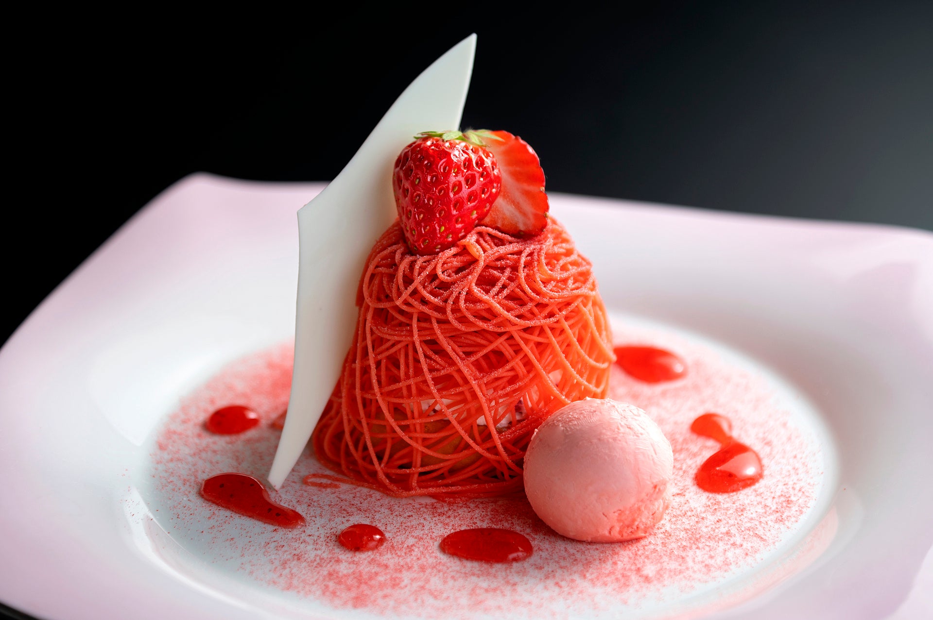 チョコレートと苺を組み合わせた可愛らしいスイーツの数々。苺のジュレ、フランボワーズオペラやフォンダンショコラ バニラアイスを添えてなど、ロマンティックなこの季節限定メニューが登場します。