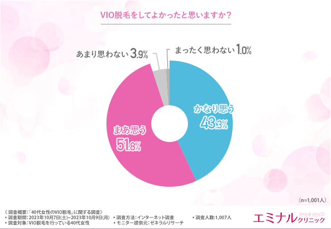 今回の調査で、40代女性のVIO脱毛の満足度は非常に高いことが明らかになりました。