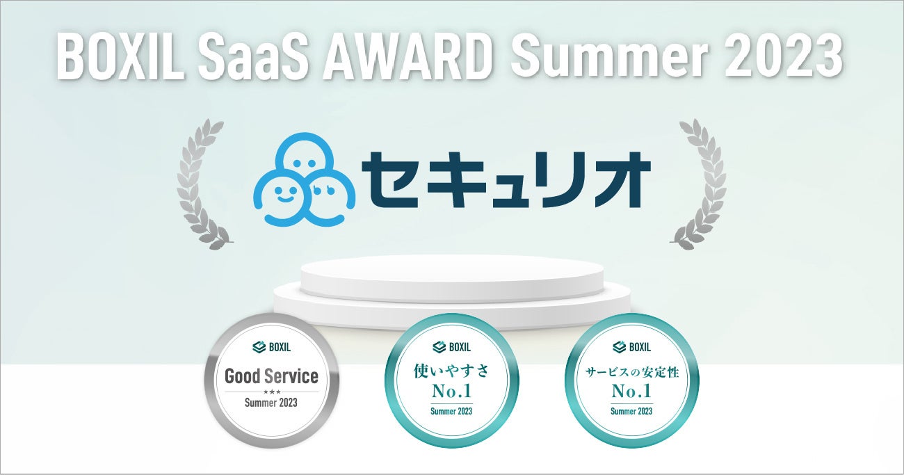 「BOXIL SaaS AWARD Summer 2023」は、2022年4月1日から2023年3月31日までの1年間で新たに投稿された口コミ約16,000件を審査対象としています。今回、情報セキュリティ教育クラウド「セキュリオ」は、IT資産管理ツール部門において、『Good Service』『使いやすさNo.1』『サービスの安定性No.1』の3つを受賞しました。