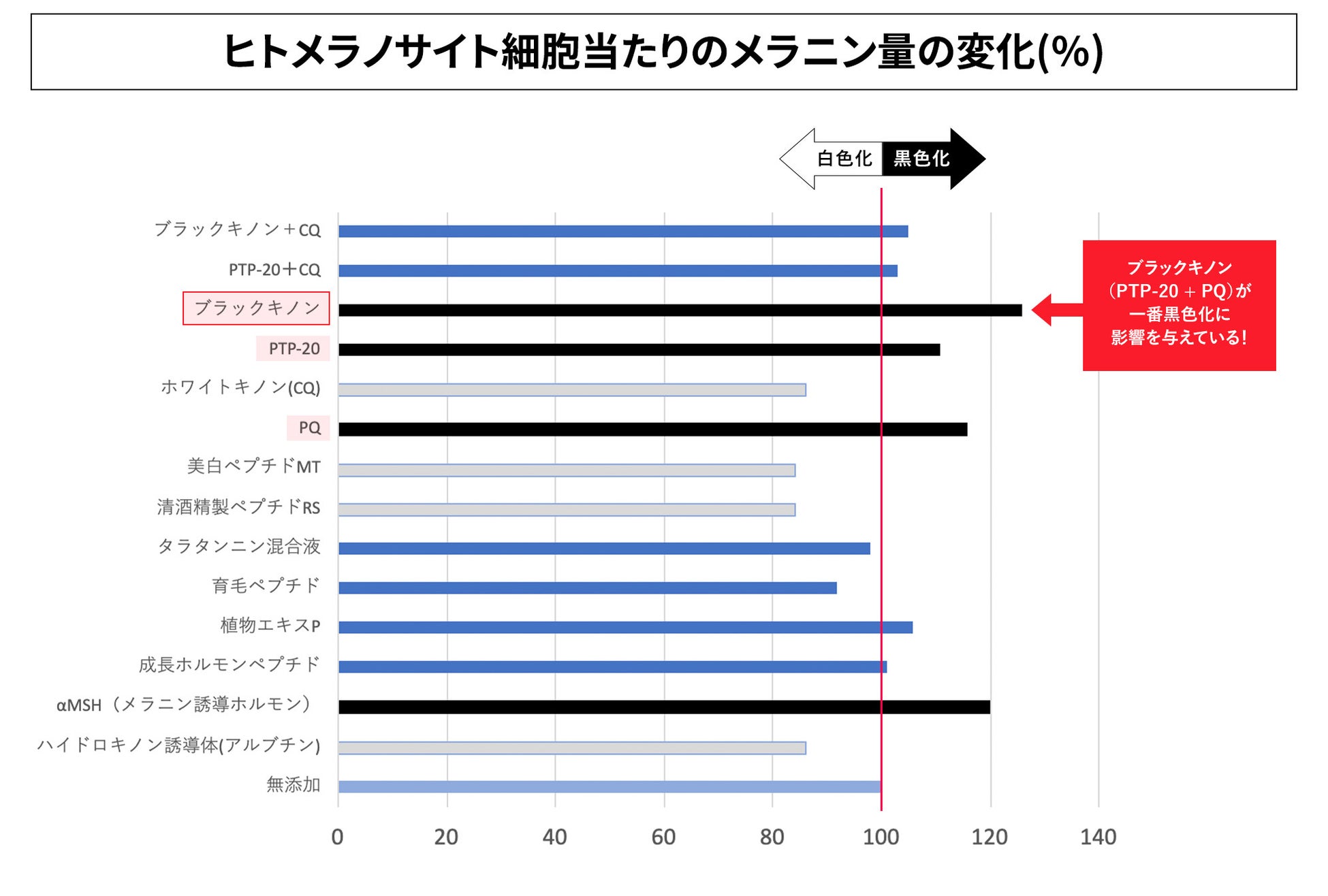 白髪改善ペプチド グレイバース(PTP-20)と、新規キノン化合物(PQ)を独自配合した「ブラックキノン(特許出願中)」がメラニン産生を促進