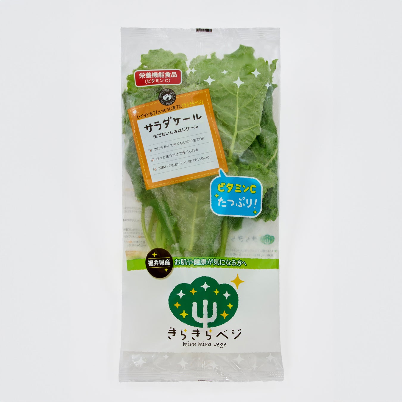 「きらきらベジ」は、当社で研究開発を行い、YJKSで生産する植物工場野菜のブランドです。