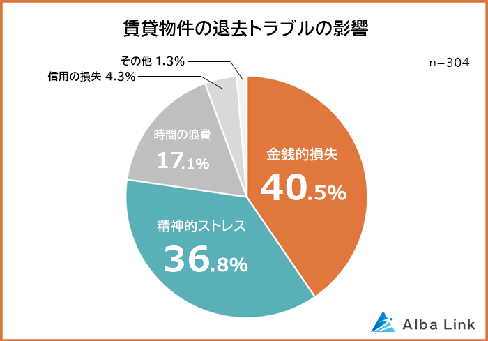 今回、株式会社AlbaLink( https://albalink.co.jp/ )が運営する高く売る不動産( https://wakeari-hikaku.com/ )は、賃貸物件の退去時にトラブルを経験したことがある304人を対象に「賃貸物件退去時のトラブル」についてアンケート調査を実施しました。