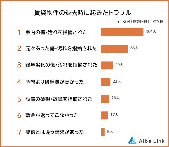 【賃貸物件の退去時トラブルランキング】経験者304人アンケート調査