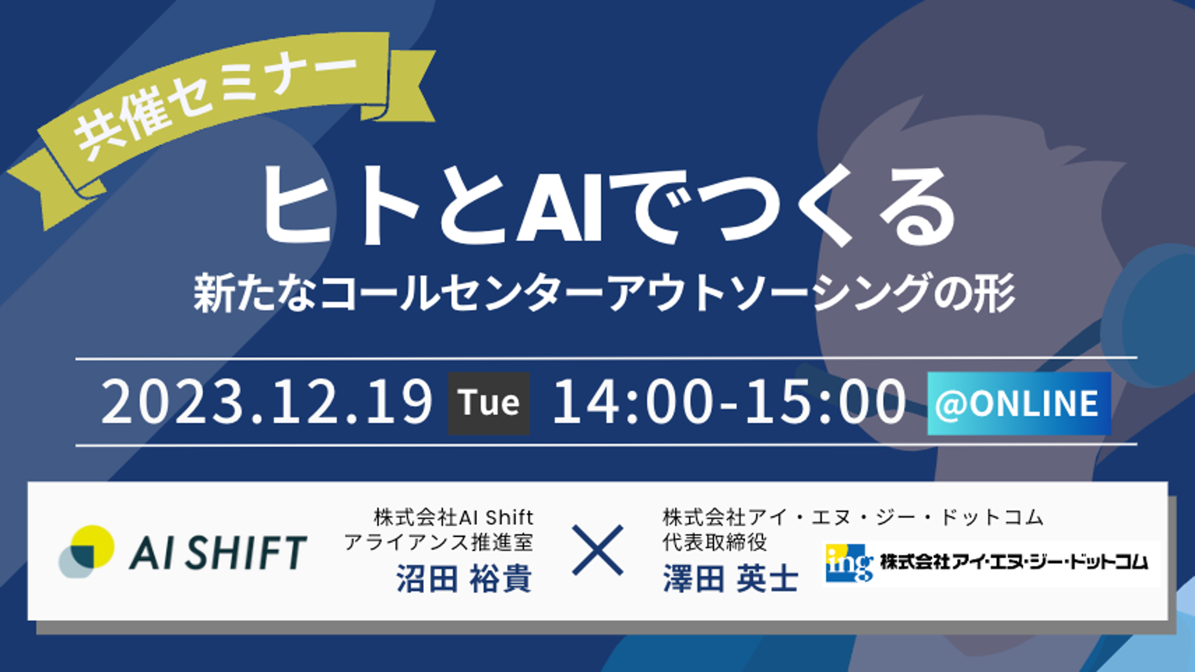 本セミナーでは、アイ・エヌ・ジー・ドットコムが今後展開していく「ヒトとAIの協働による新たなコールセンターBPO」事業を、ユースケースと共にご紹介いたします。