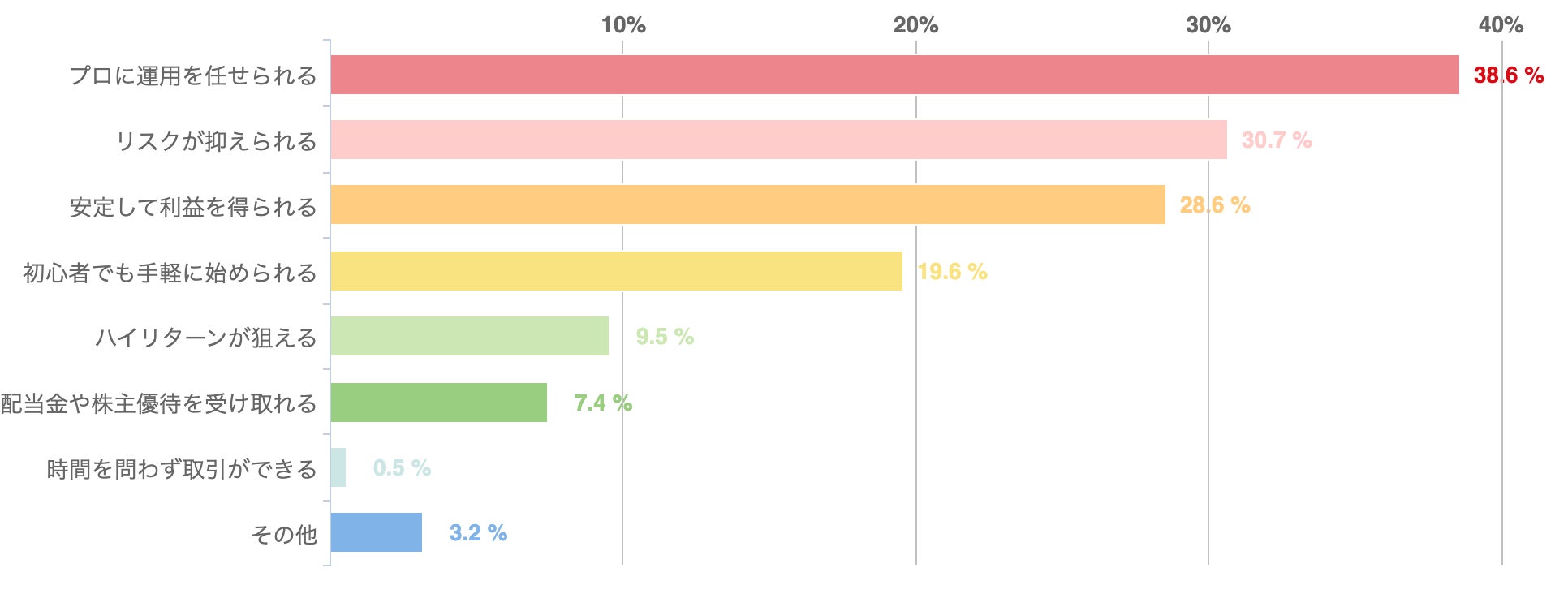 アンケートによれば、サラリーマンが投資信託を推奨する理由としては、「プロに運用を任せられる(38.6%)」点が最も多かった。