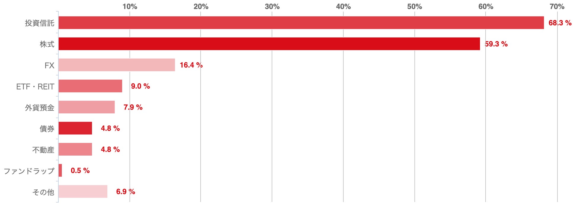 アンケートによれば、サラリーマンは、「投資信託(68.3%)」と「株式(59.3%)」を中心に資産運用を行っていることが明らかになった。
