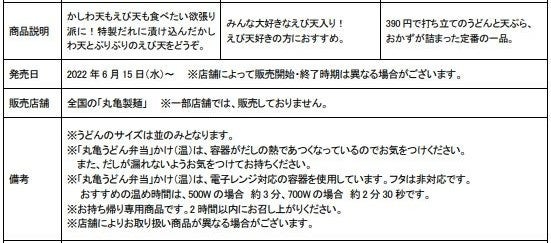 【「丸亀うどん弁当」 商品概要】