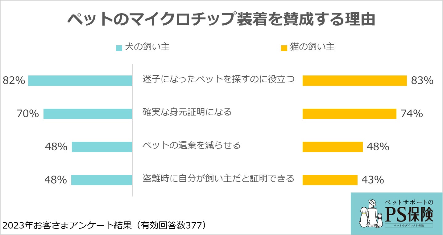 ペットへのマイクロチップ装着に「賛成」「どちらかというと賛成」と回答した飼い主(377名)に、その理由を聞きました(複数回答可)。