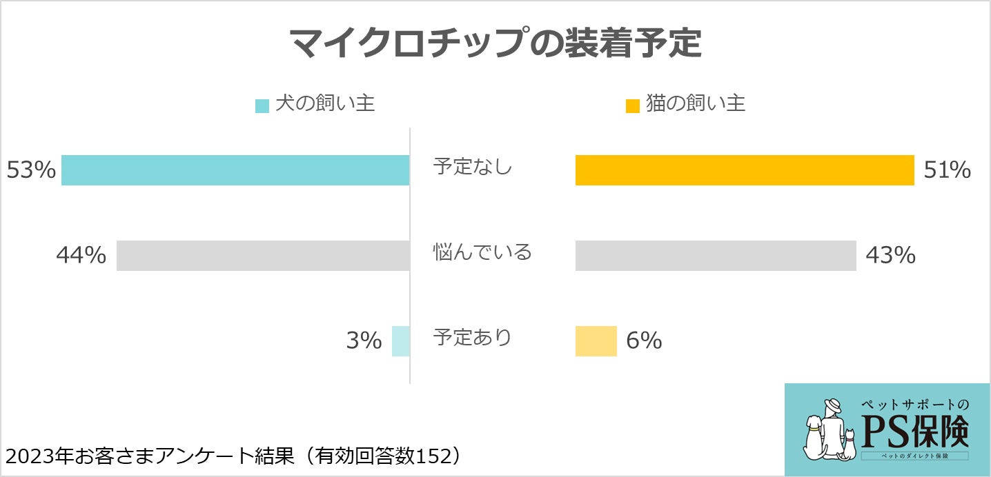 今後のマイクロチップ装着に「予定なし」は半数以上で、消極的な結果に