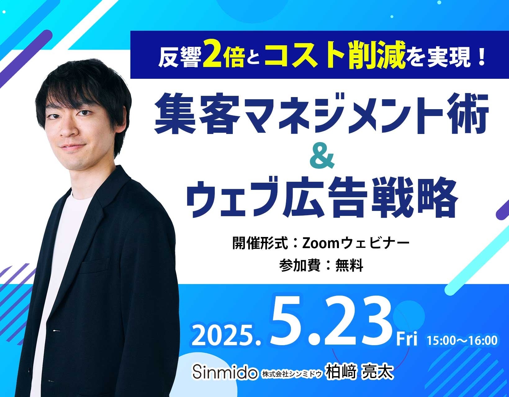 【シンミドウ】5月23日(金)※無料オンラインセミナー※反響2倍とコスト削減を実現!集客マネジメント術&ウェブ広告戦略