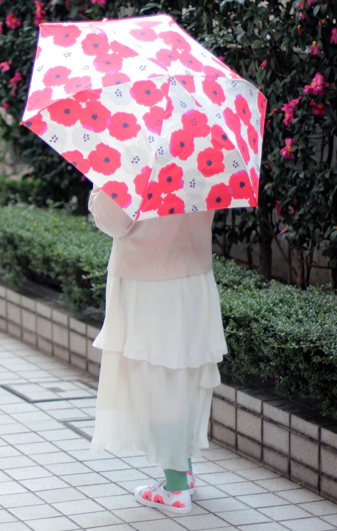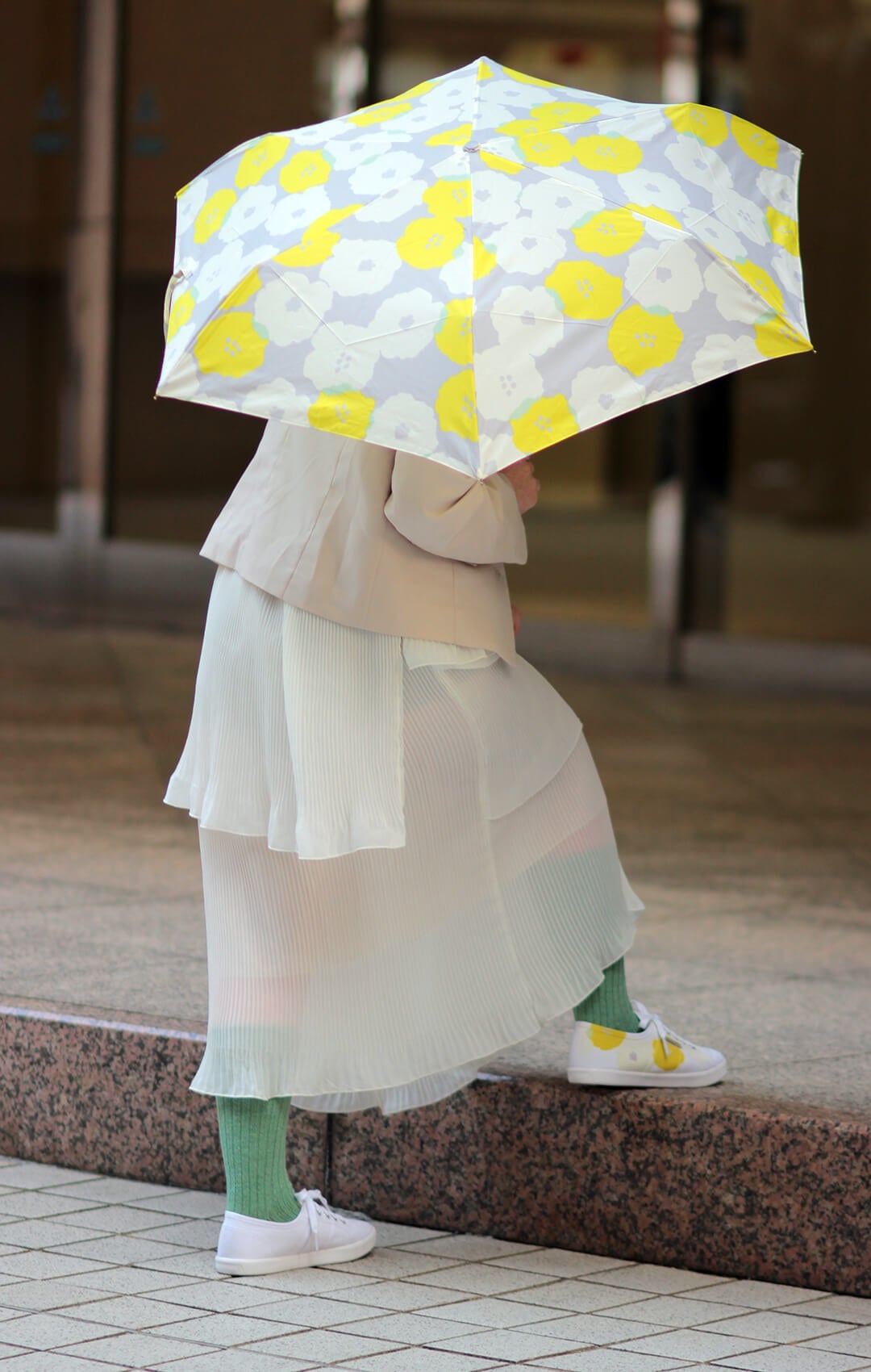 「雨の日が楽しくなる」というレイングッズメーカーならではの観点から作られた柄は、華やかで明るい色使いが特徴です。傘という多種多様な人が使うアイテムに落とし込むために、ぱっと目をひくような印象的なデザインでありながら多くの人に愛される柄になるよう仕上げられています。そんなテキスタイルデザインは傘だけに留まらず、あらゆる生活のシーンに彩りと豊かさを与えるものでありたいと思います。
