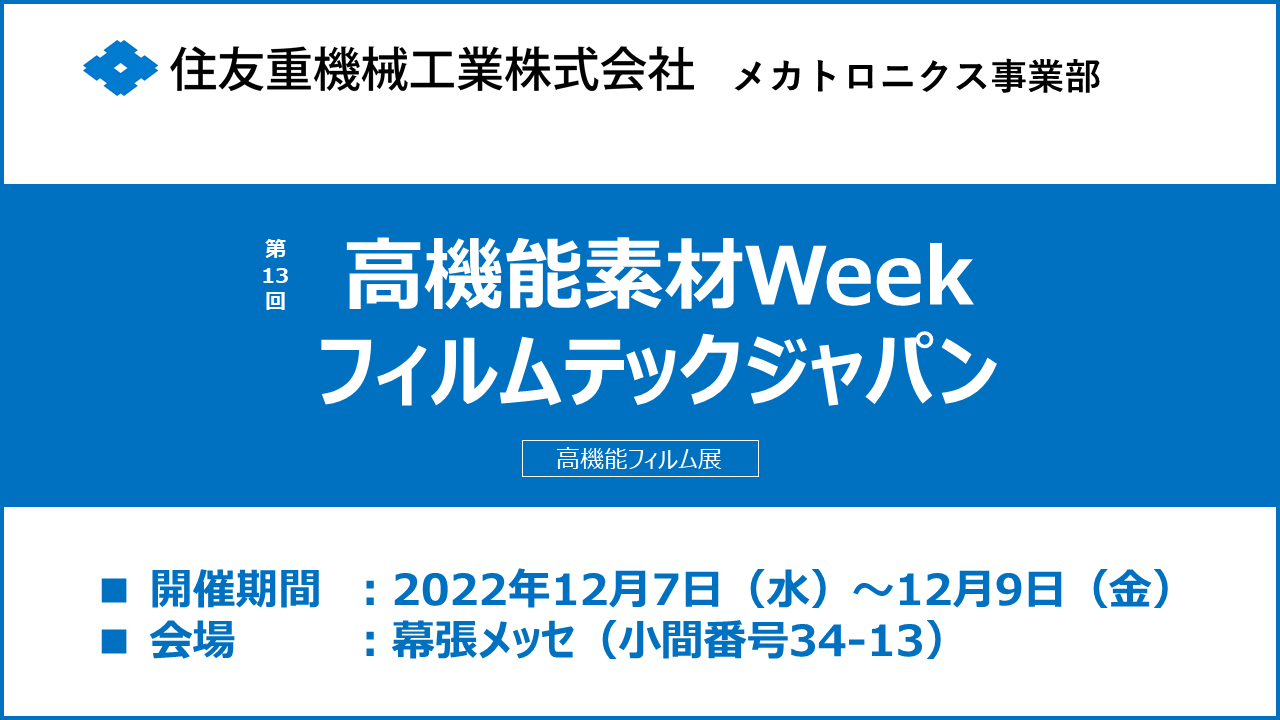 住友重機械工業『第13回高機能素材Week内 高機能フィルム展』に出展します