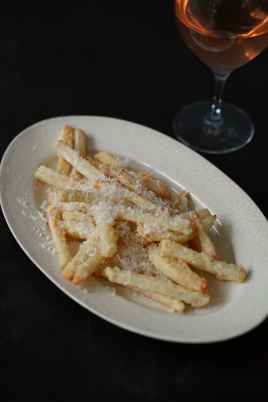 揚げずにフライドポテト感を出すために小麦粉をまぶし、少量のオイルでコーティングし、スマートノンフライオーブンChefで焼き上げました。カリッと焼きあがった上にパルミジャーノ・レッジャーノを削るとチーズが溶けてとても美味しいです!