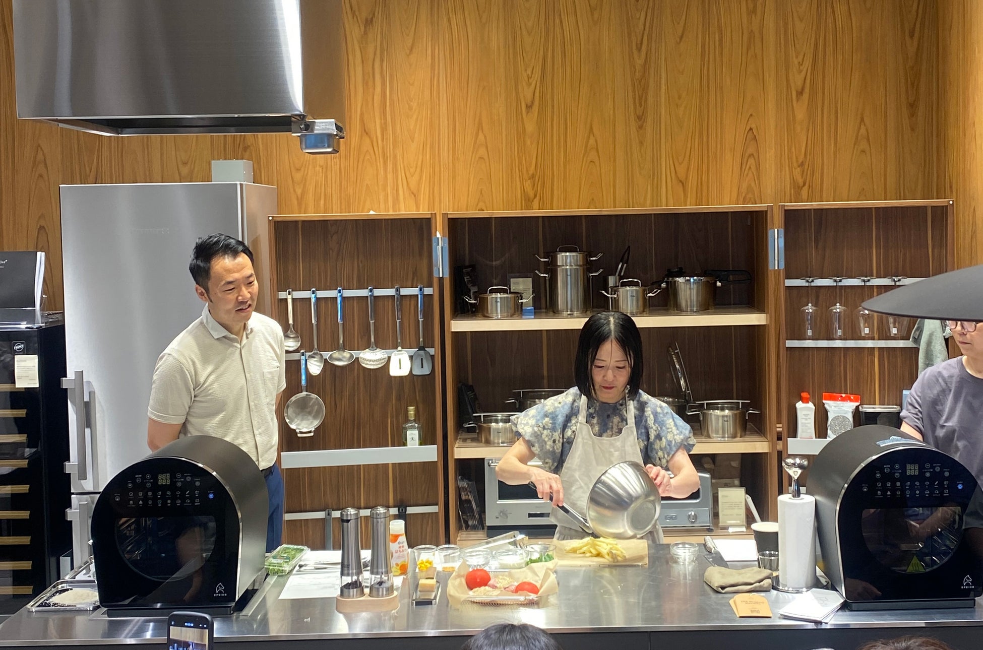 今回のイベントは、 ワイ・ヨット ストア 麻布台ヒルズにて夏の暑さに負けない「時短・簡単・火を使わないヘルシーメニュー」をテーマに、人気インフルエンサー:えりさんを講師に迎え、注目のキッチンアイテム「スマートノンフライオーブン Chef(以下:シェフ)」を活用したイベントを行いました。