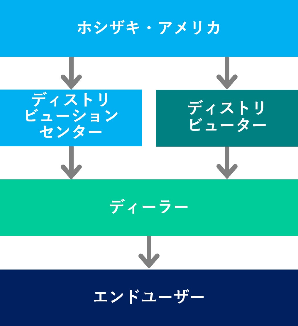 現在のホシザキブランド製品の米国売上は製氷機が中心ですが、さらなるビジネス拡大のため、業務用冷蔵機器の販売強化を目指しています。このための戦略の一つとして、外部ディストリビューター経由での業務用冷蔵機器の販売ルートの見直しを図っており、今回の事業買収はこの一翼を担うものです。