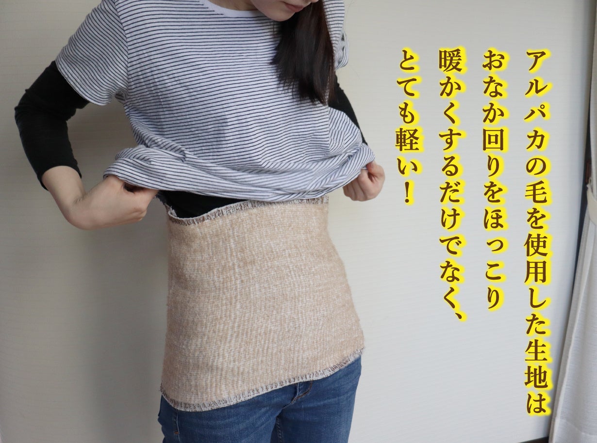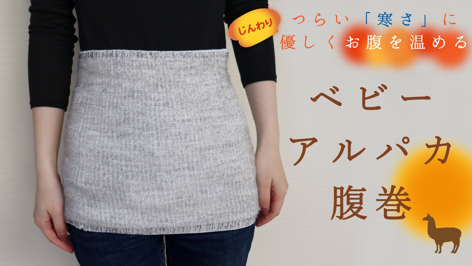 ふんわりベビーアルパカの腹巻でポカポカおなかを温める