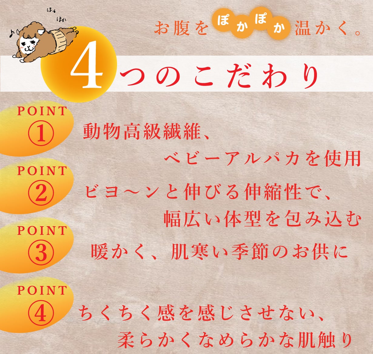 ・タイトル:〈お腹の寒さ対策に〉じんわりふんわり温かさが包み込む。ベビーアルパカ腹巻