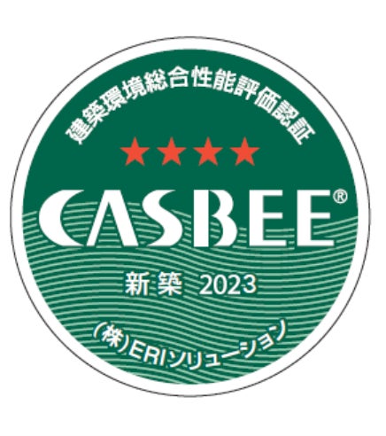 一般財団法人住宅・建築SDGs推進センター(IBECs)が認証する建築環境総合性能評価のCASBEE は、建築物の環境性能を評価し格付する手法です。Aランクの評価結果は、S(素晴らしい)・A・B⁺・B⁻・C(劣る)の5段階のうち「⼤変良い」を意味し、環境への配慮はもちろん、室内空間の快適性や周辺環境への配慮を含めた建物の総合的な性能が通常の建物より優れている場合に受けることができます。