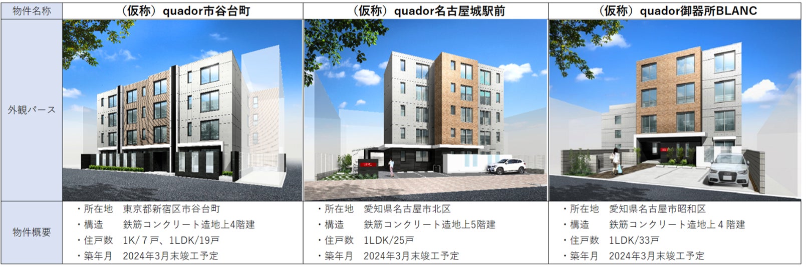 株式会社リビングコーポレーション(所在地:東京都渋谷区、代表取締役社長:鈴木英樹)は、当社が開発を行い、東京・名古屋で2024年に竣工予定の新築RCマンション「(仮称)quador市谷台町」「(仮称)quador名古屋城駅」「(仮称)quador御器所BLANC」について、「CASBEE建築評価認証 Aランク評価」を取得いたしました。quadorシリーズは、2021年12月以降着工の全23棟にてCASBEE Aランクを取得しており、当社が開発するRCマンションの環境性能が高く評価されております。