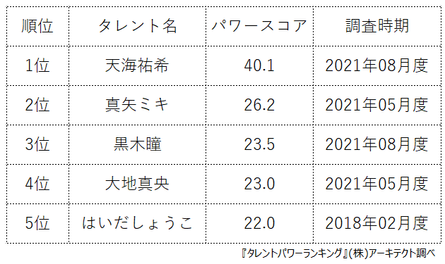 タレントパワーランキングは、株式会社アーキテクトが実施する業界最大規