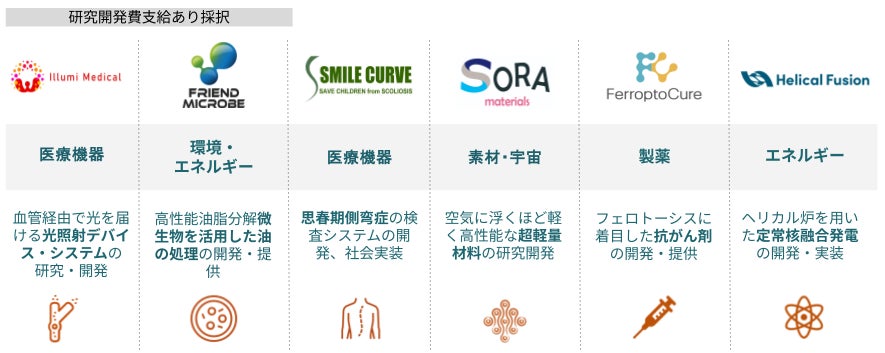 メンタリング、マッチング、経営スキル研修に加え、研究開発経費の支給も