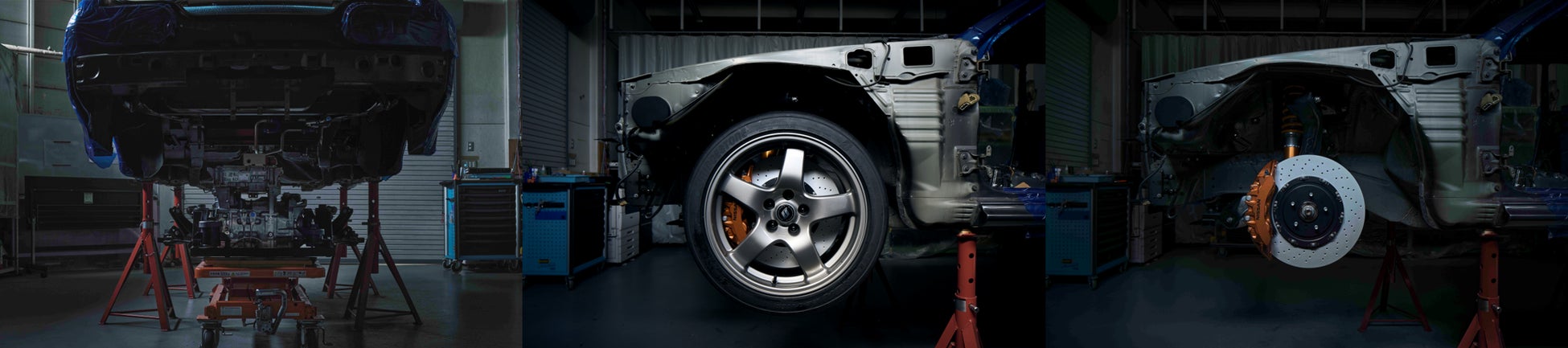 エクステリアはR32GT-Rの外観をそのまま活かしていますが、ストッピングパワーを確保するためにR35GT-Rのブレーキシステムを装着。ブレーキサイズの拡大に合わせて、R32GT-Rオリジナルの5本スポークホイールのデザインをスポーク裏まで再現した18インチアルミホイールを採用しています。