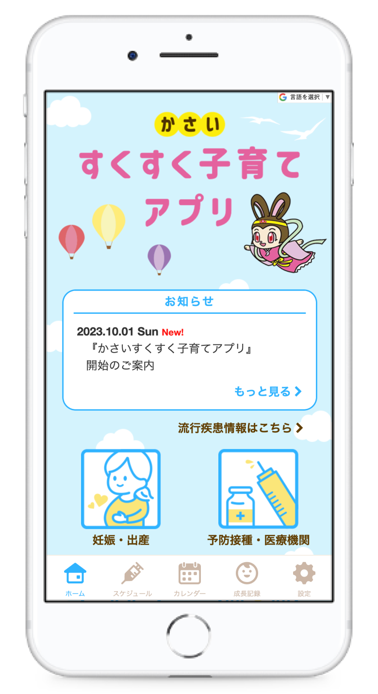 加西市のお子さんが元気にすくすくと成長されるよう願いを込めて、「かさいすくすく子育てアプリ」と命名しました。トップページには加西市イメージキャラクター「ねっぴ~」が登場し、加西市らしさが詰まった、こだわりのデザインでお届けします。