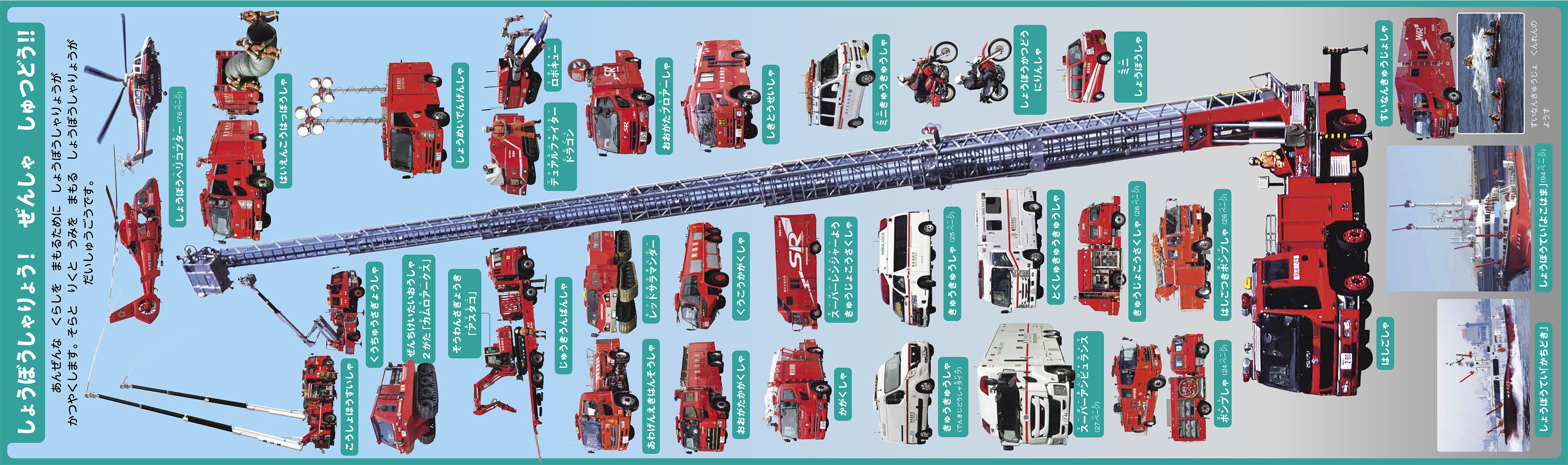 ▼消防車両がズラリと並んだ大迫力の観音ページ