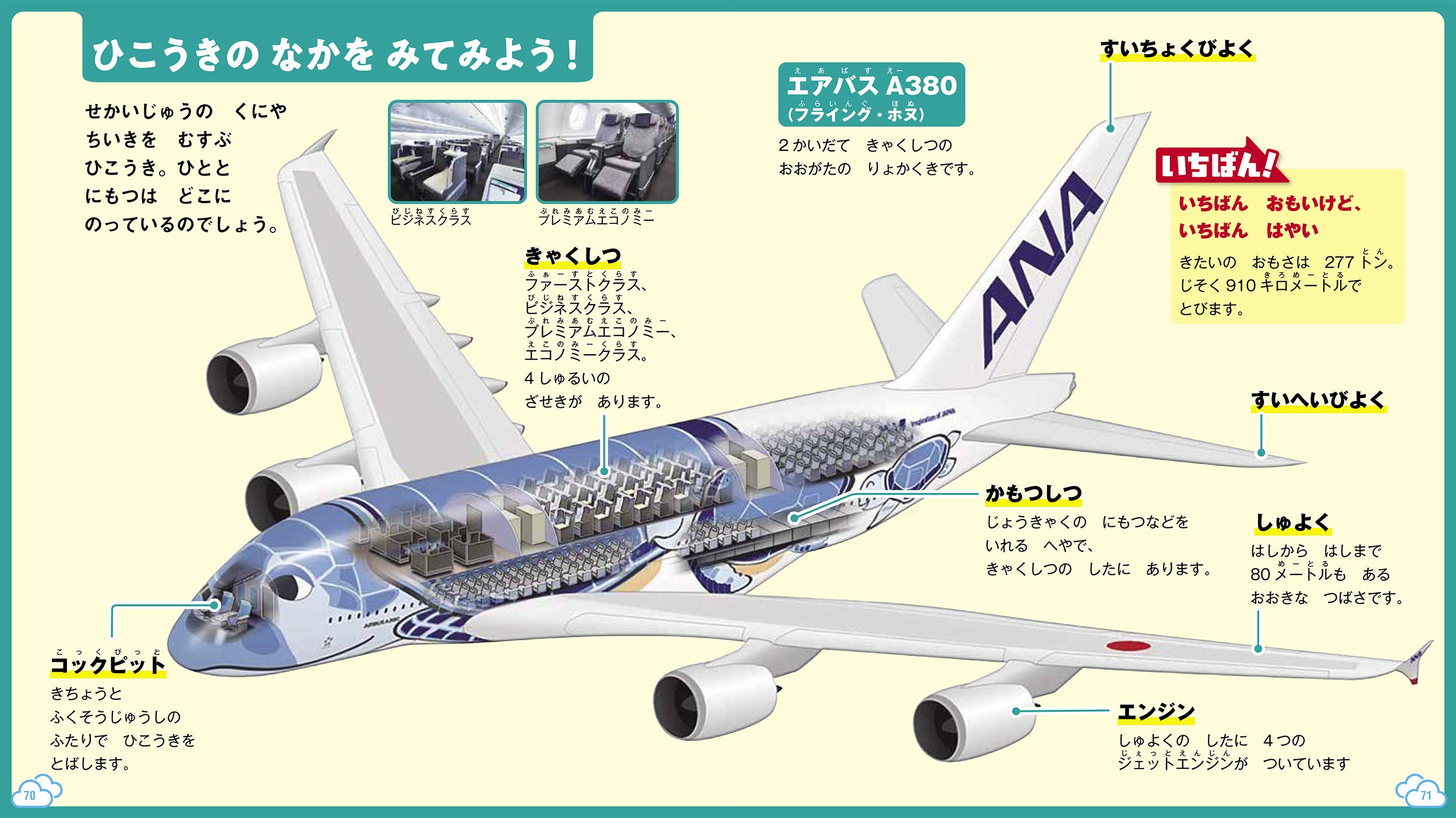 ▼人気の乗りものの内部の構造に迫る透過イラスト