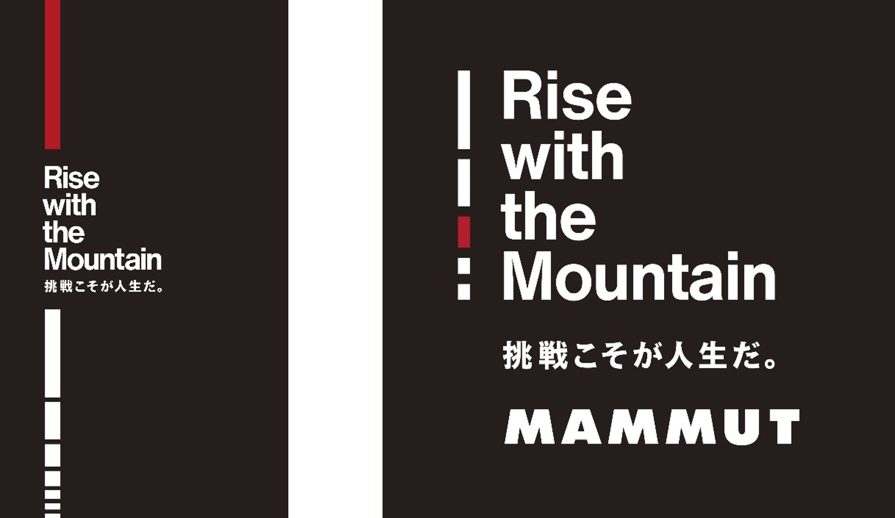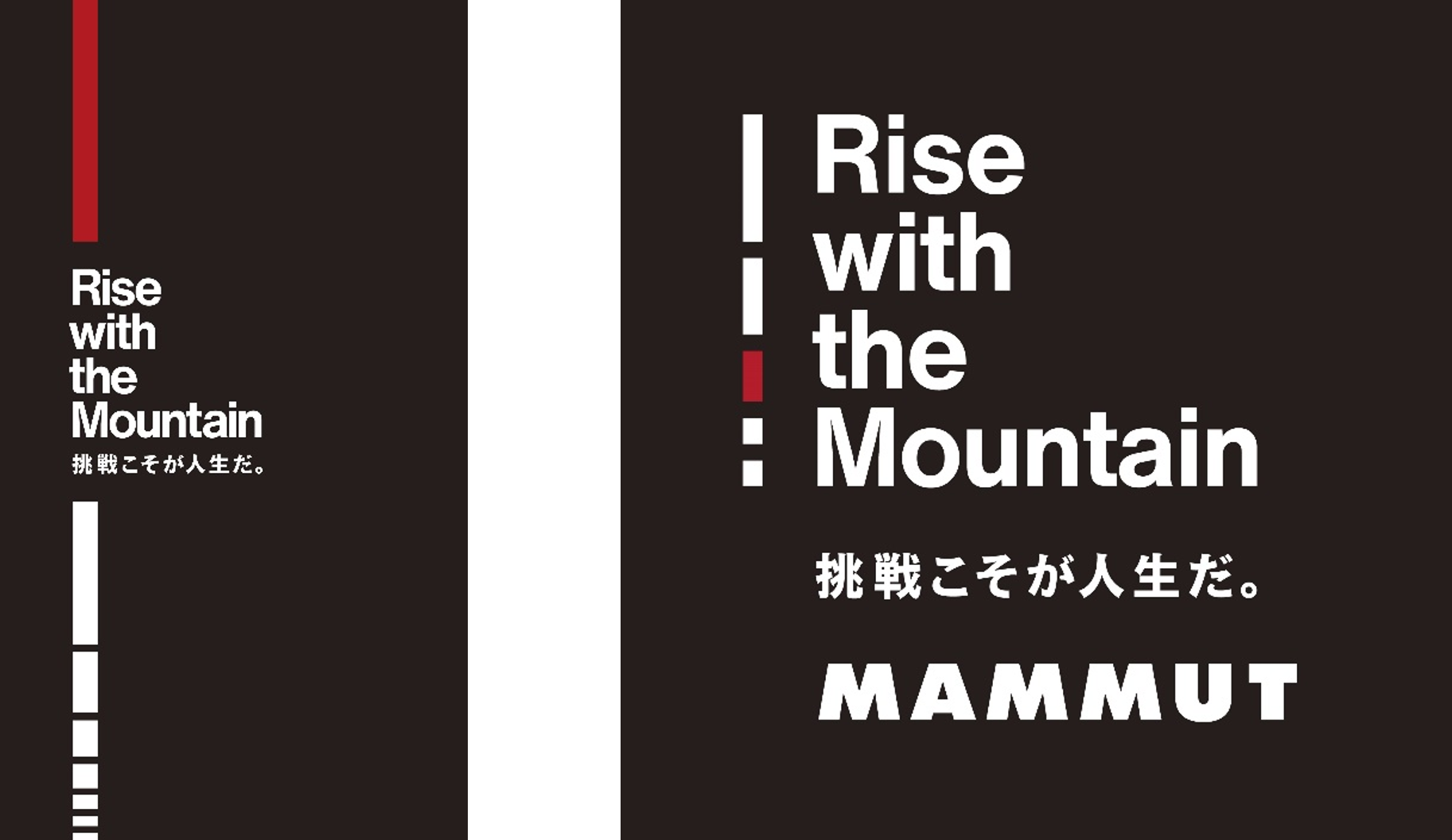 新しいブランドスローガンは、4つのキーワード、「山」「挑戦」「成長 : Rise」「人生」で構成されます。「山」は、スイスでの山岳スポーツを原点とするマムートにとって、とても意義深いものですが、今回はより幅広く、様々な「課題」を象徴させています。「人生」とは、「山に登る」=「課題に挑戦する」ことによって「成長:Rise」し、ベストな自分を目指していくことであると規定。そして、その挑戦を応援したい、というマムートの思いが込められたスローガンです。